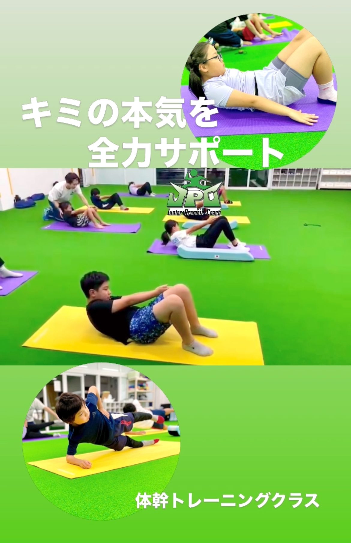 JPCスポーツ教室では、体幹トレーニングに特化したトレーニングをおこなっています! 自ら厳しいトレーニングに向き合うことで自分にもライバルにも負けないメンタルを鍛えます✨ *体操体幹トレーニングクラス...