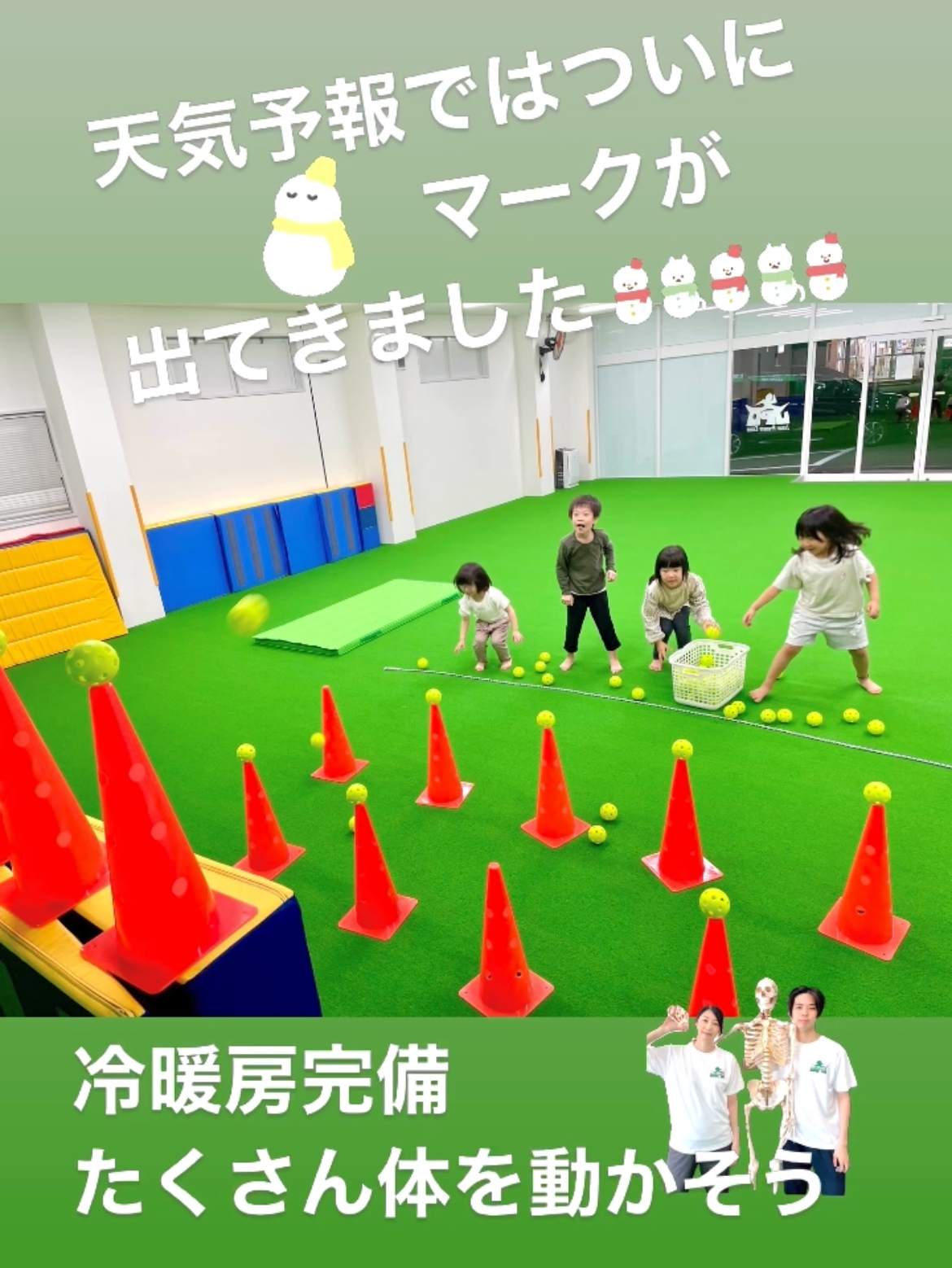 JPCスポーツ教室山形店では、『冷暖房完備』のため夏の暑い時期や冬の寒い時期でもたくさん運動がおこなえます! 雪の降る時期に楽しみながら「できない」→「できた✨」を増やしましょう。 *体操体幹トレーニ...
