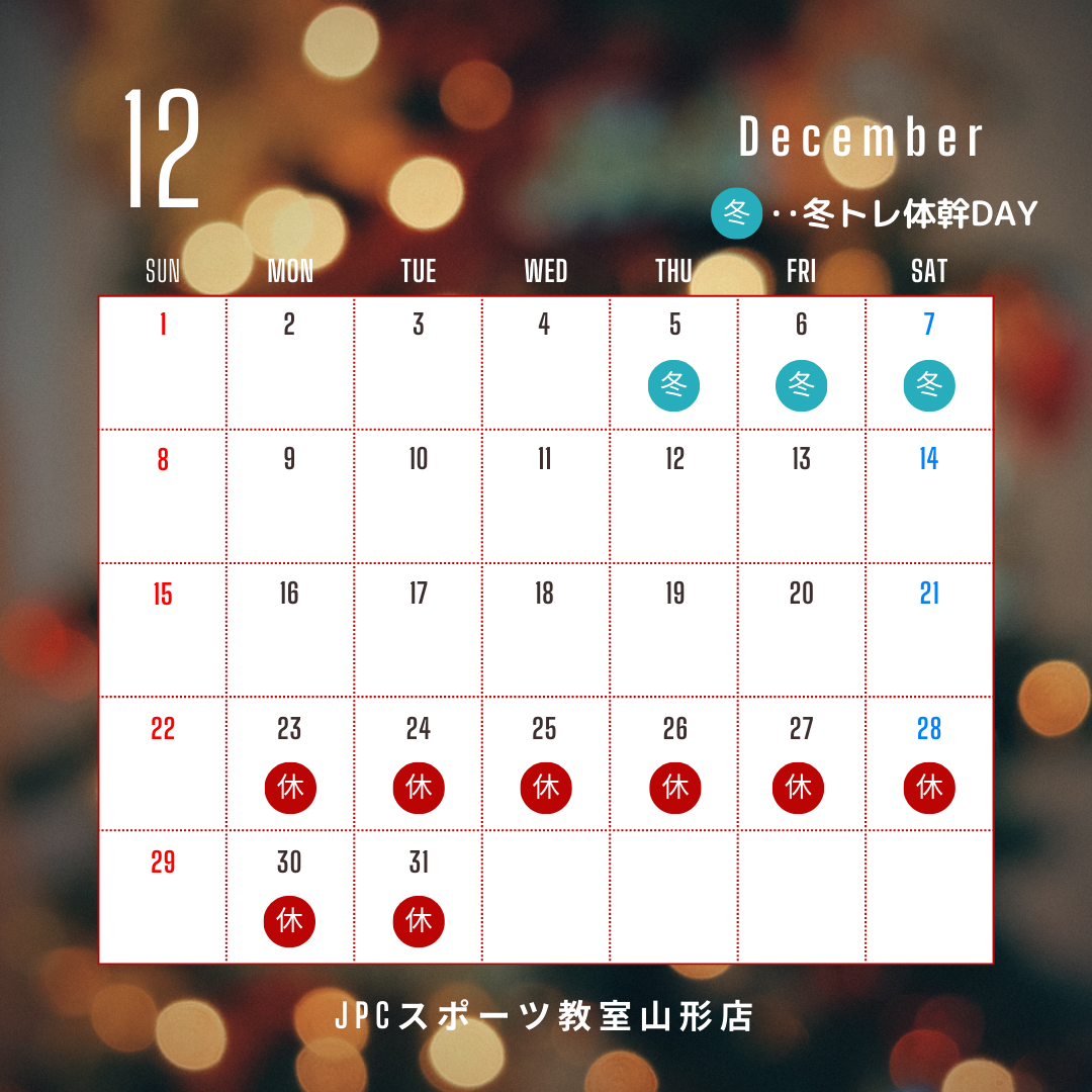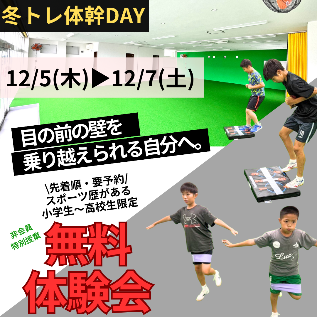 大好評! 第3弾は冬トレ体幹DAY開催✨ 12月5日(木)▶︎12月7日(土) https://lin.ee/tgtY094 年末のため上記期間はお休みさせていただきます。 教室のお休み中は、お問い合...