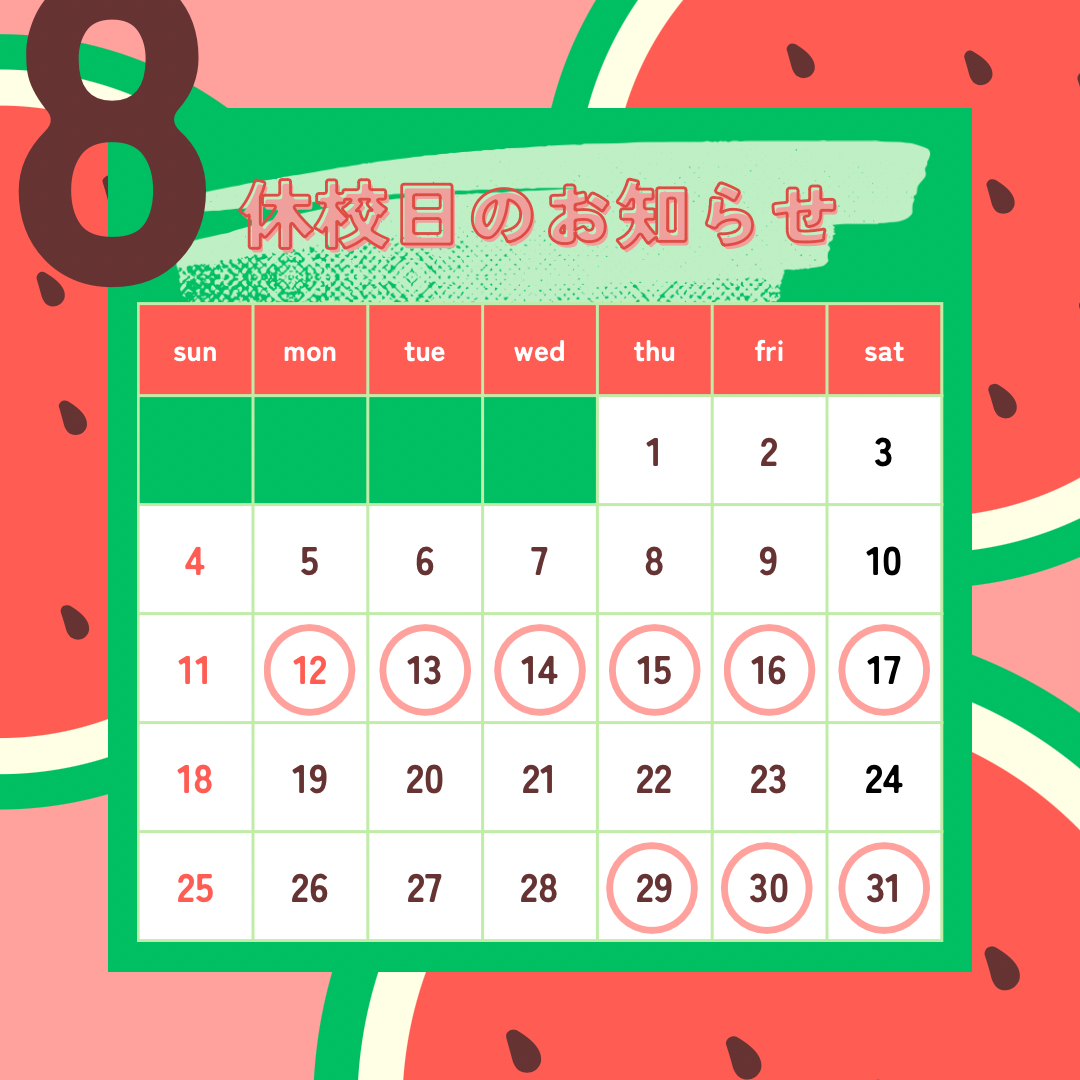 お盆休み、授業回数調整のため上記期間はお休みさせていただきます。 お問い合わせにつきましては順次ご返信させていただきます。 ご不便をおかけいたしますが、何卒よろしくお願いいたします。 ・ ・ ・ #j...