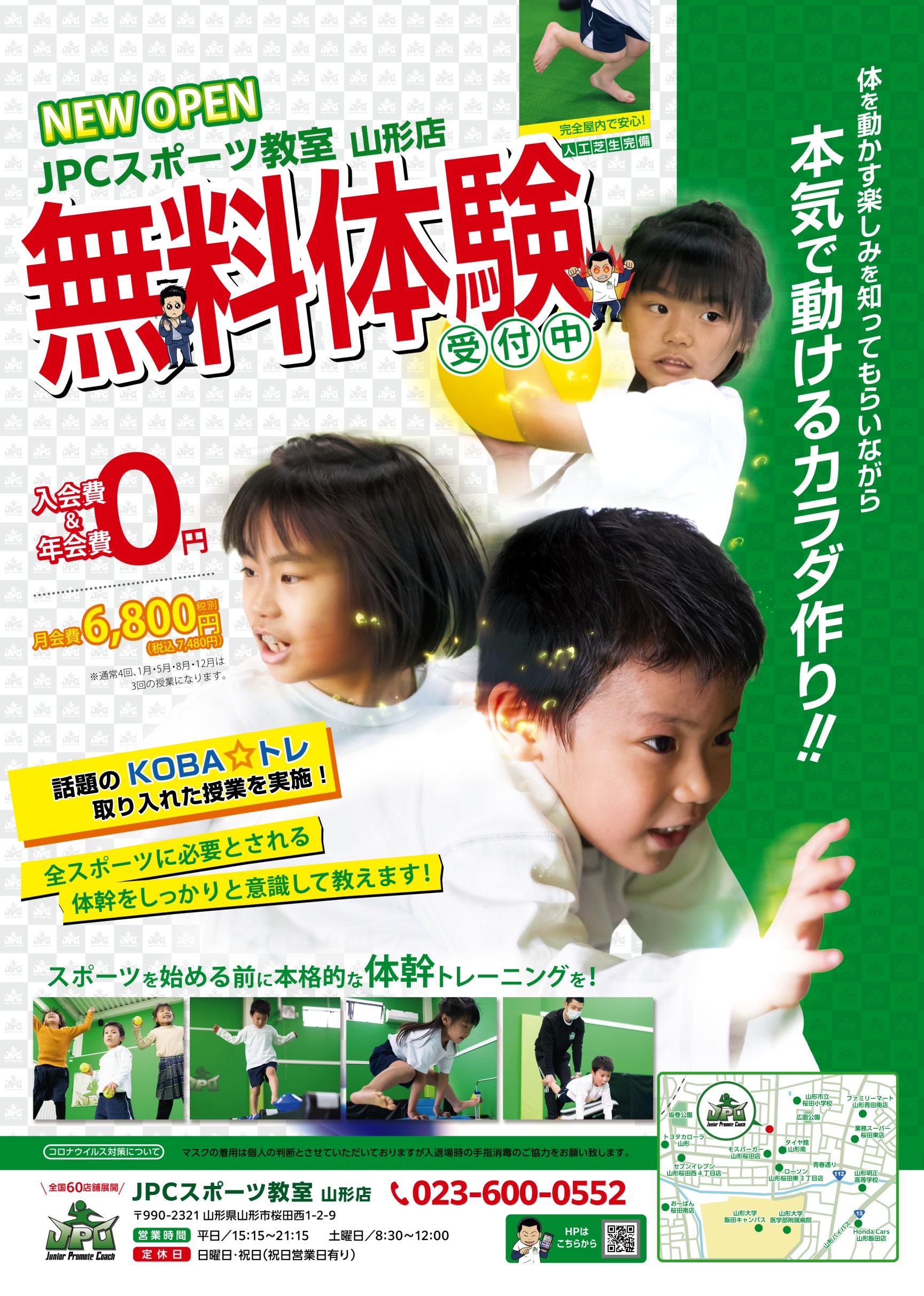 東北初出店㊗️ 山形1号店が令和6年5月6日(月・祝)オープン! オープン当日は、予約不要のオープン見学会も開催🤸 【見学会詳細】 JPCスポーツ教室山形店 日時:5月6日(月・祝)9時~17時 場所...