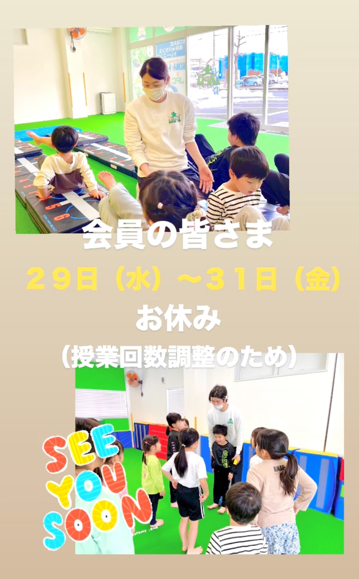 *お休み* 1月29日(水)▶︎1月31日(金) 授業回数調整のため上記期間はお休みさせていただきます。 お問い合わせのメール、LINEにつきましては順次ご返信させていただきます。 ご不便をおかけいた...