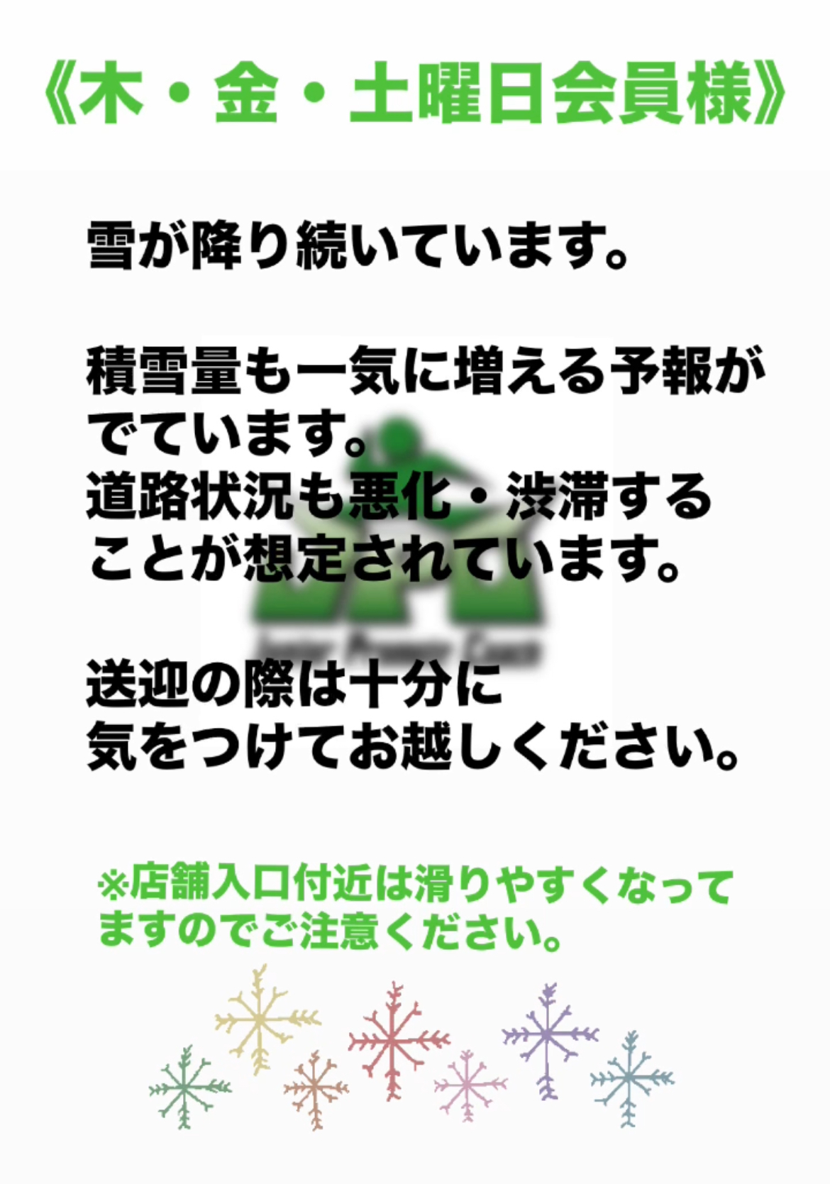 今週末にかけて雪が断続的に降るようです。 積雪量も一気に増え道路状況も悪化・渋滞することが想定されています。 送迎の際は十分に気をつけてお越しください。 JPCスポーツ教室山形店では、『冷暖房完備』の...
