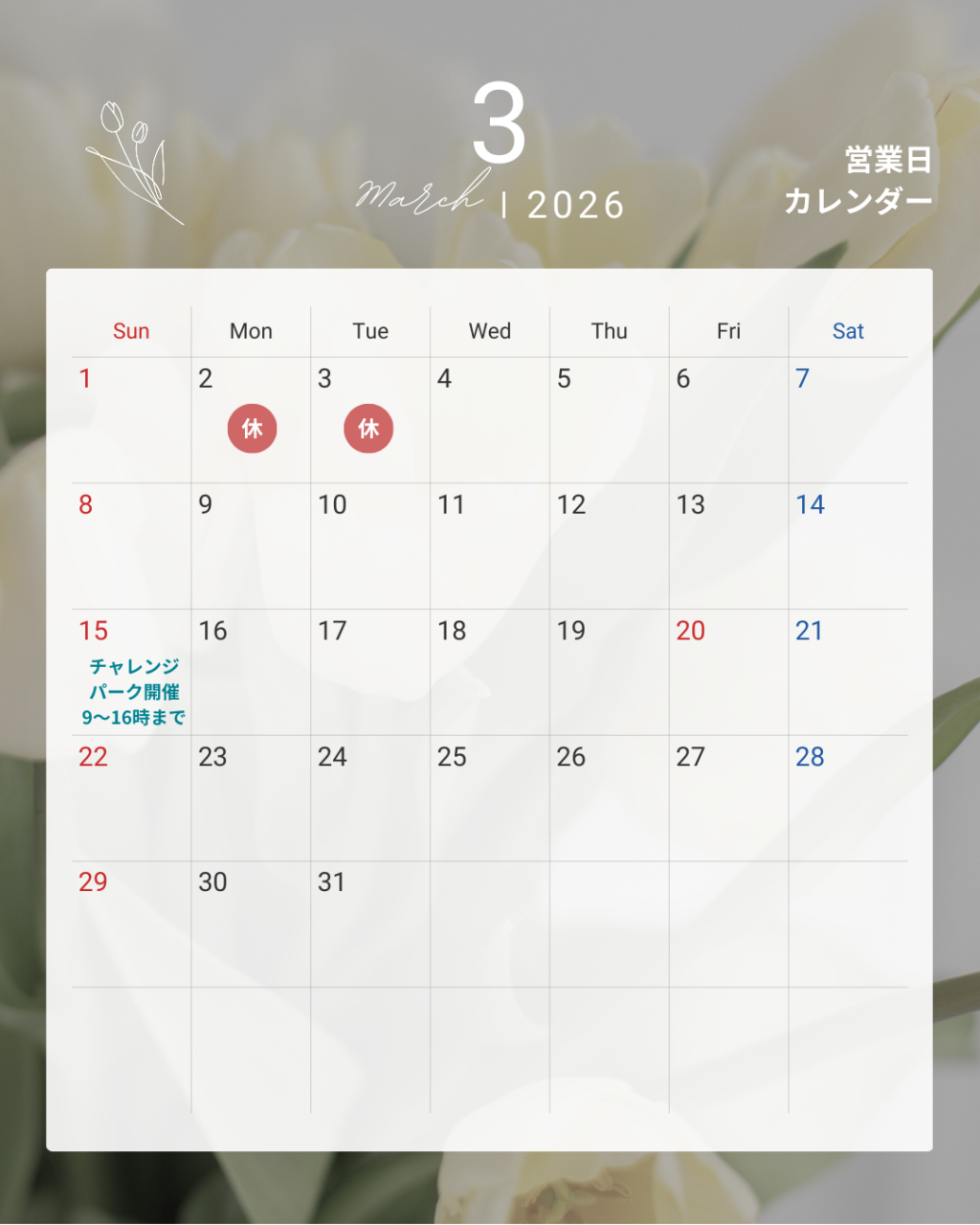 【3月カレンダーのお知らせ・JPCスポーツ教室山形店】
