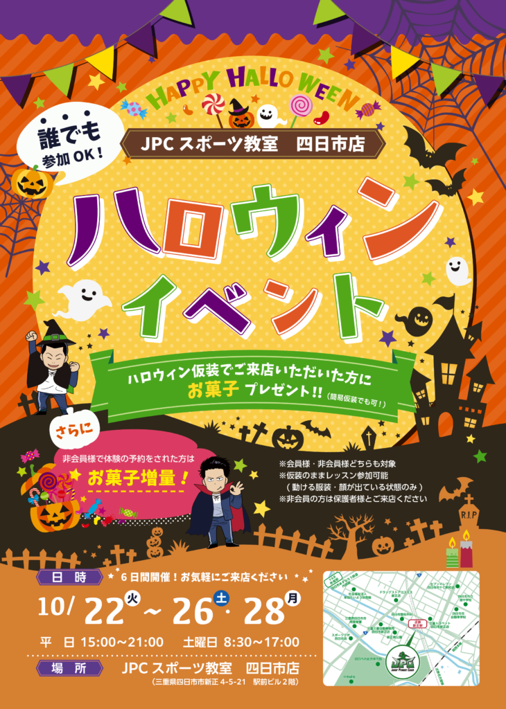 仮装(簡単なものでOKです!)をして店舗にご来店くださった方全員にお菓子をプレゼントをします!